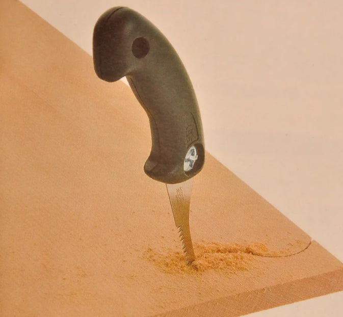 The JAB Keyhole Alligator Saws come in 80, 150 and 210 mm lengths. These small accessory saws are especially suited for cutting plywood or MDF and can be easily maneuvered for curved cuts. Blades are made of SK5 high-carbon Japanese steel.