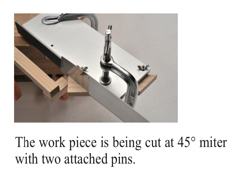 The 10mm aluminum body has a 30mm-wide guide plate section. Two pins are included for miter cutting when making photo frames. Therefore, the guide can be used to cut the workpiece at 90 degrees and 45 degrees. The Cross Cut Guide can also be changed from right-handed to left-handed use.