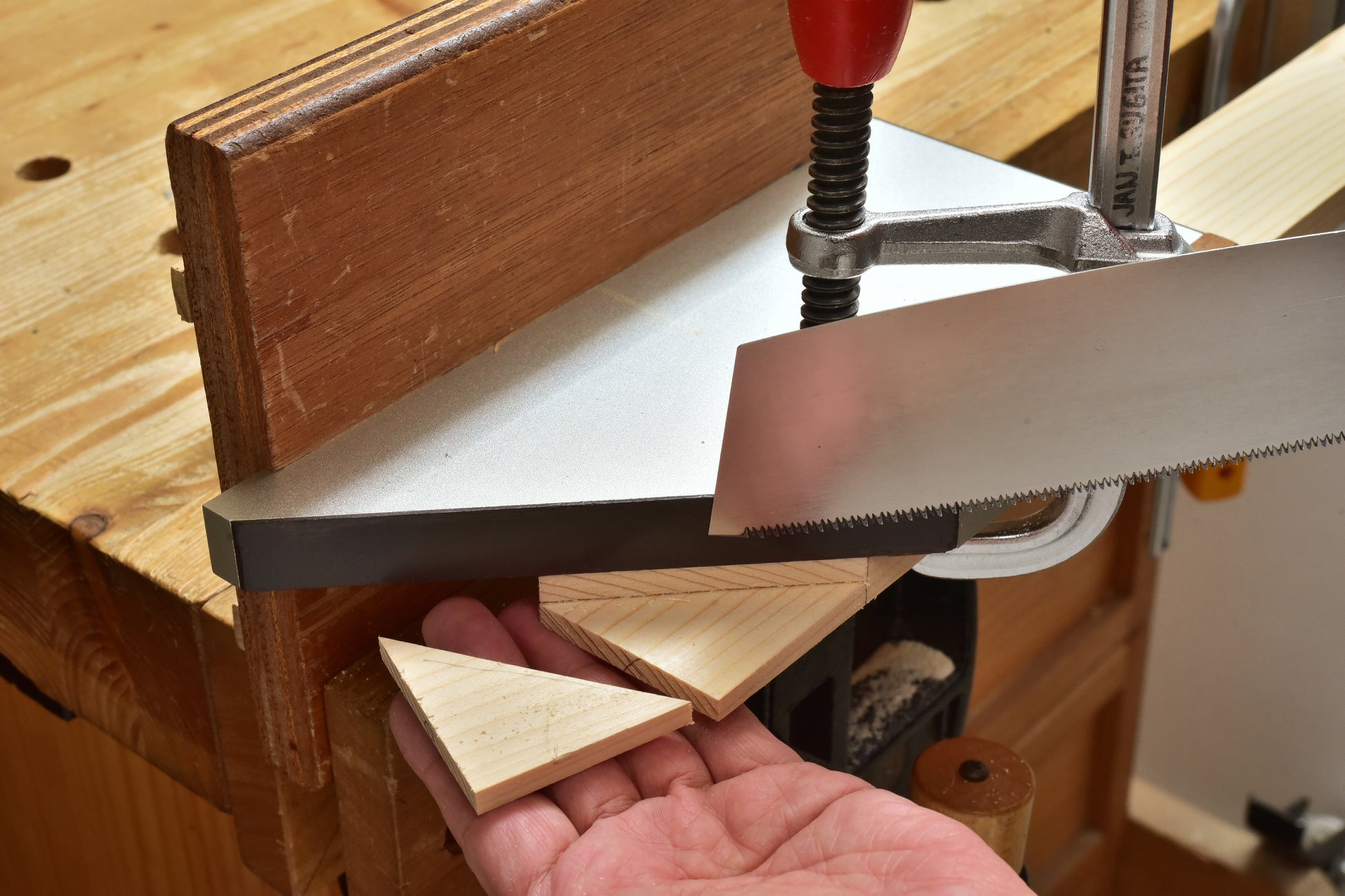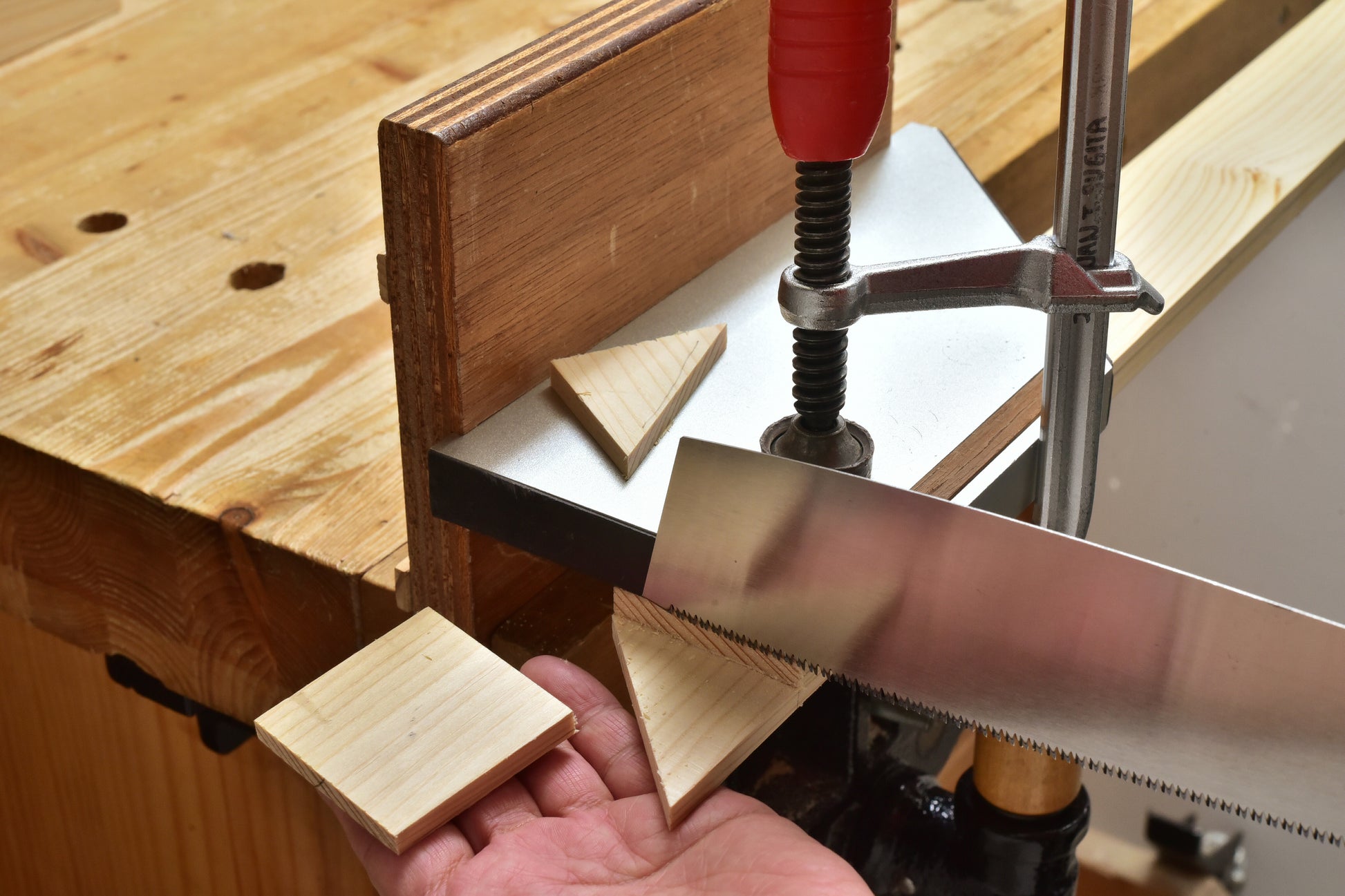This is an aluminum version of the Miter Cutting Guide introduced in the book Woodworking Joinery by Hand, starting from p. 172. The user needs to supply and prepare the fence, T-Shaped Stopper, and the auxiliary board. The Aluminum Miter and Cross Cutting Guide enables the user to cut both 45 degree miters and 90 degree cross cuts, as shown in the diagram.