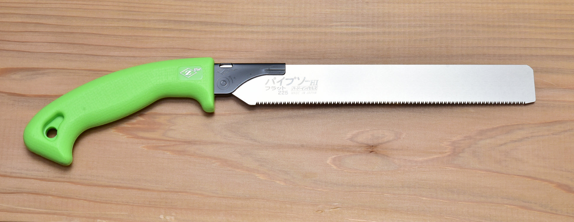 The Pipe Saw Flat 225 is a non-set flush-cut saw which is useful for shallower kerfs in wood, as well as cutting smoothly through plastic, acrylic, and PVC. Similar to the MIRAI a265 flush cut saw, the Pipe Saw Flat's teeth pattern does not protrude outward like a set-tooth saw; therefore, the non-set pattern enables a straighter cut and minimizes scratches onto the workpiece.